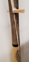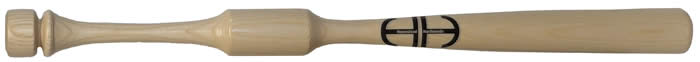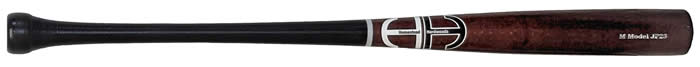 JP23 Hockey Puck Knob Style -Above bat shown in Maple with black stained barrel, white stripe and dark brown stained barrel Weight rating: BALANCED